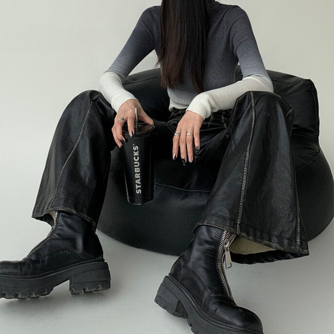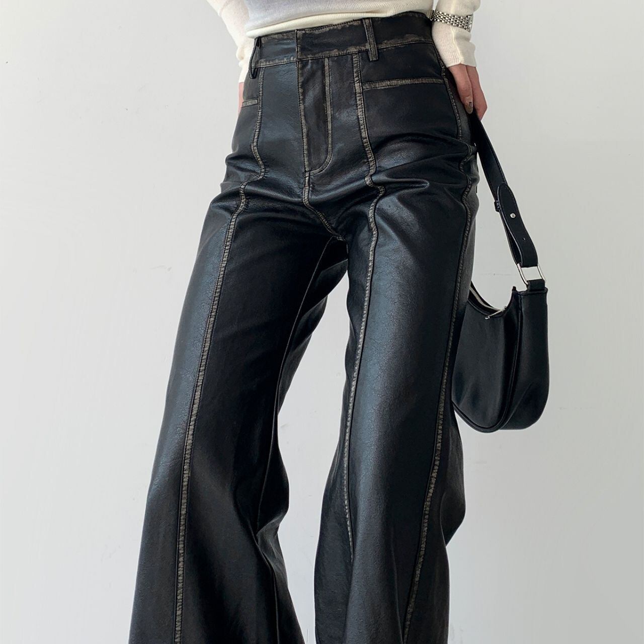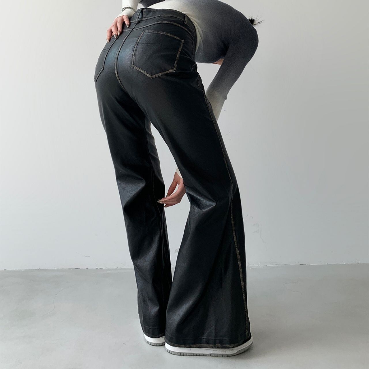 ヴィンテージライクフェイクレザーワイドパンツ LT0010019