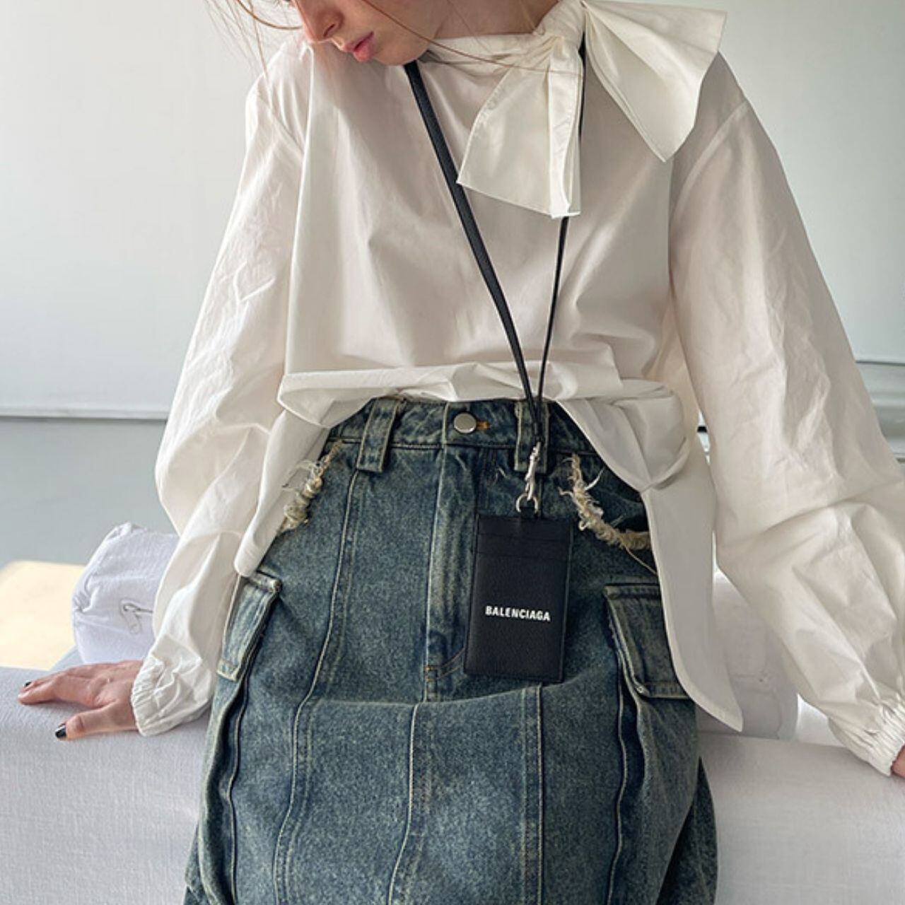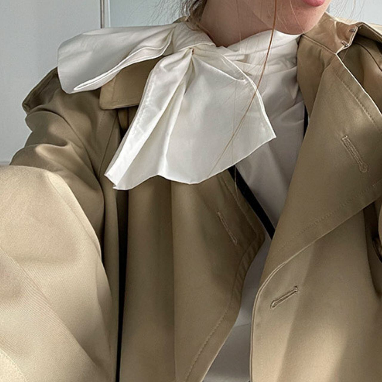 リボンパフスリーブホワイトブラウス LT0040015