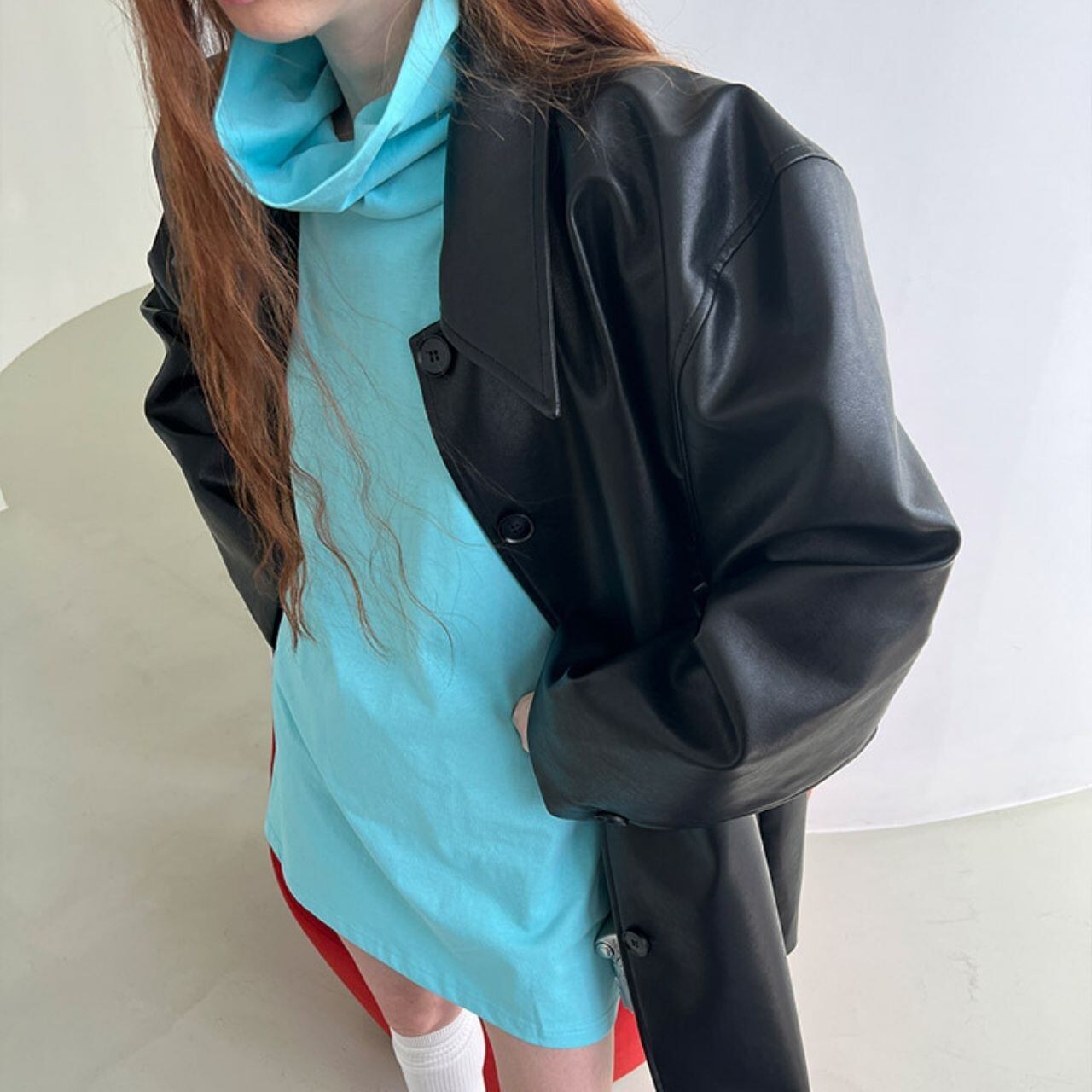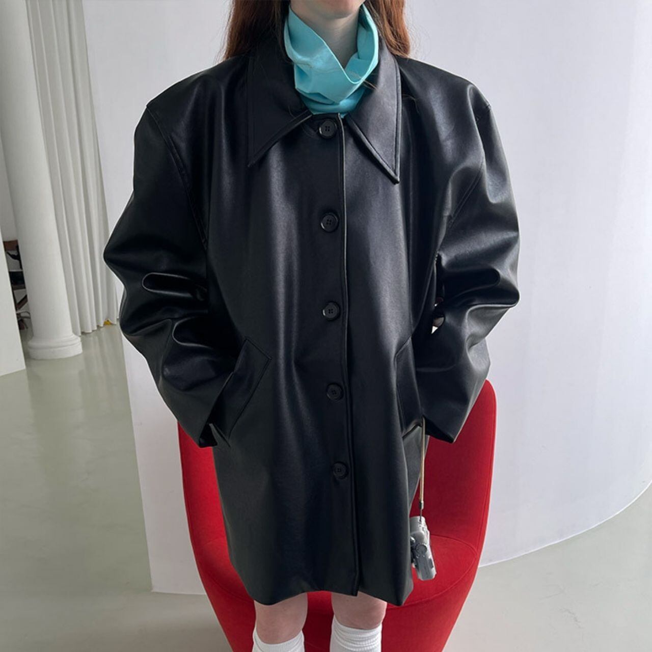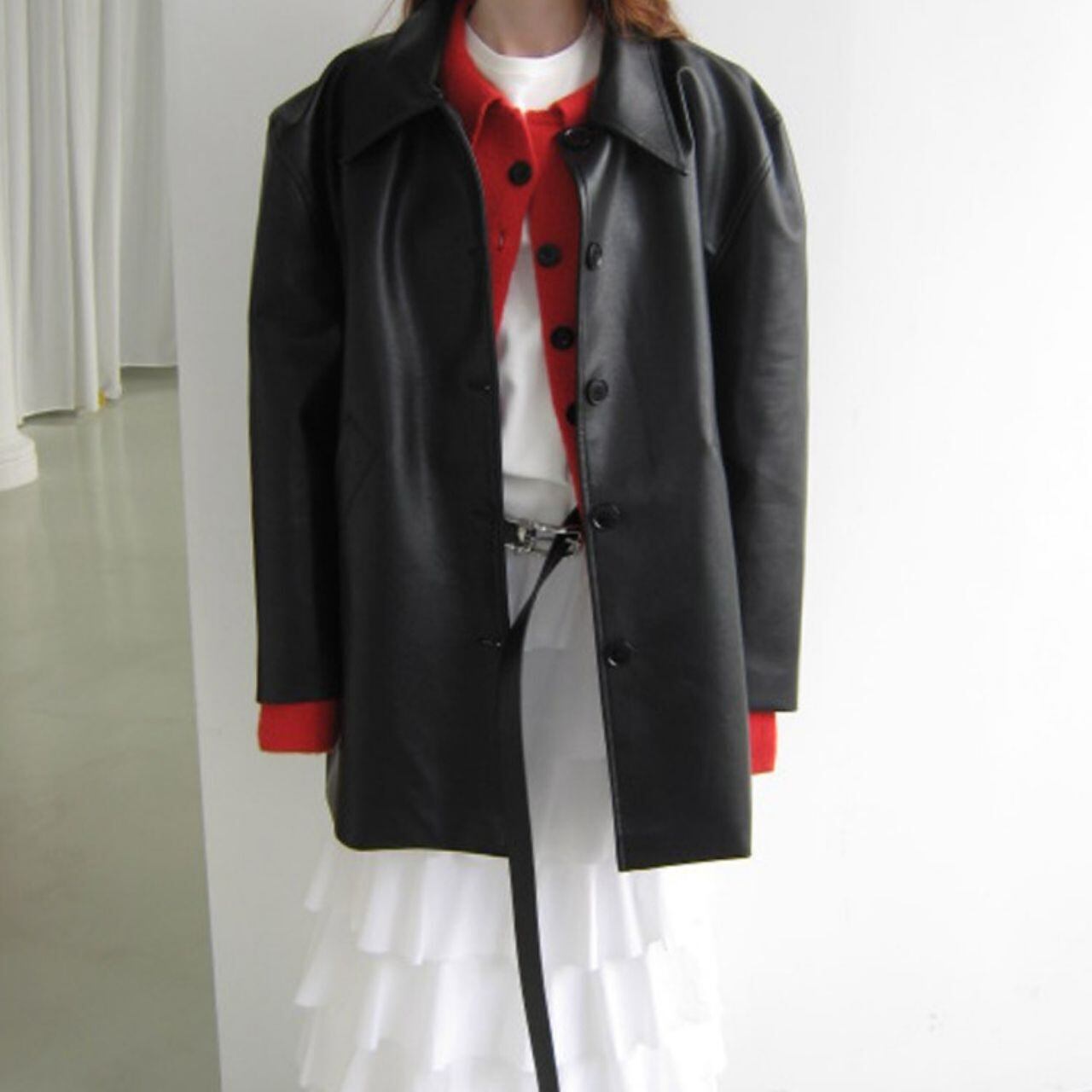 パフスリーブシルエットフェイクレザーコート LT0040028