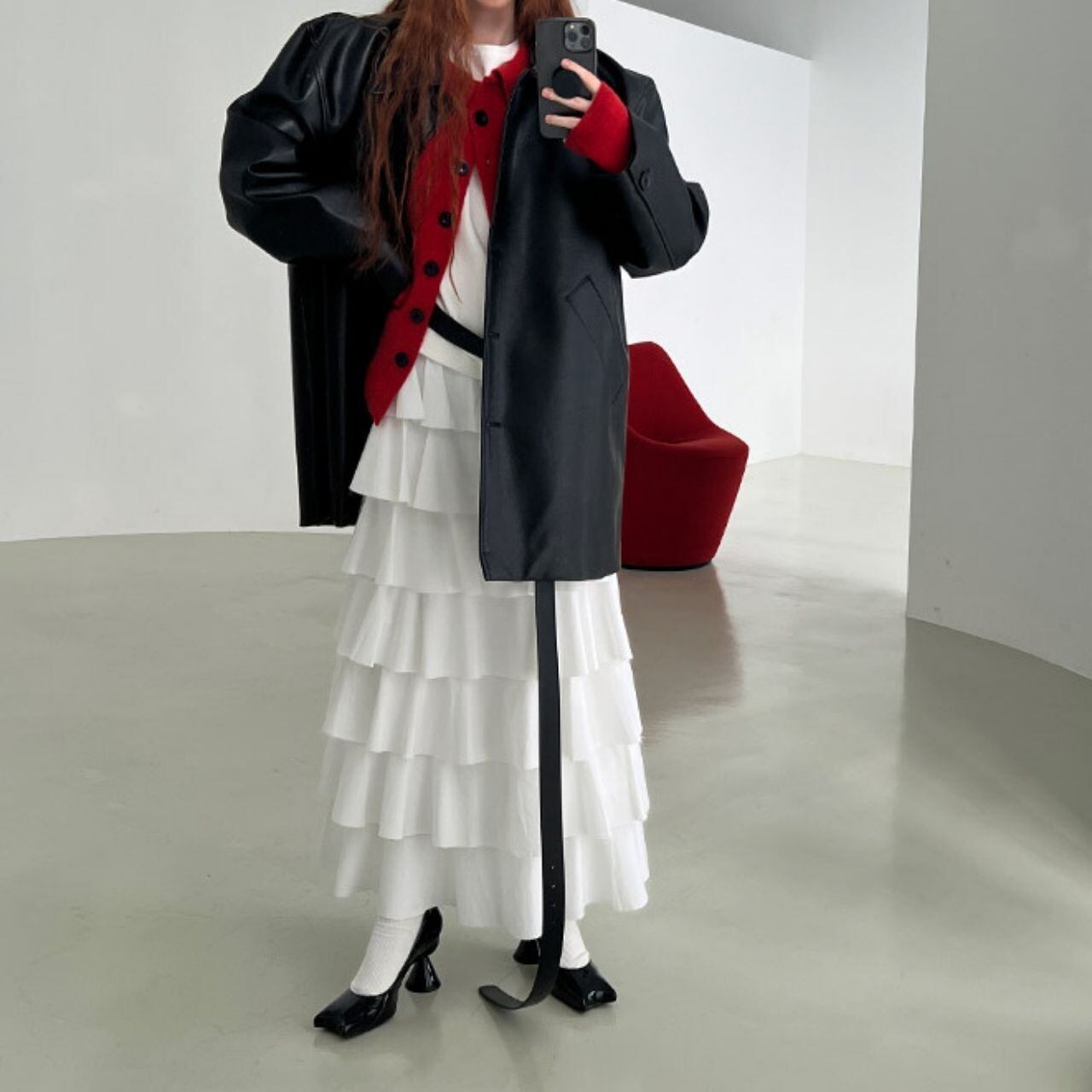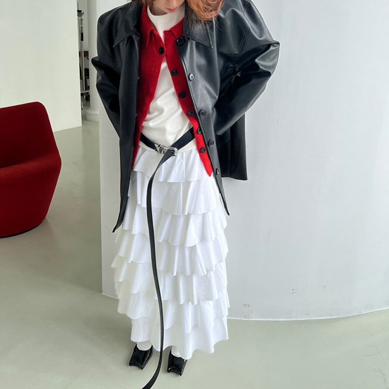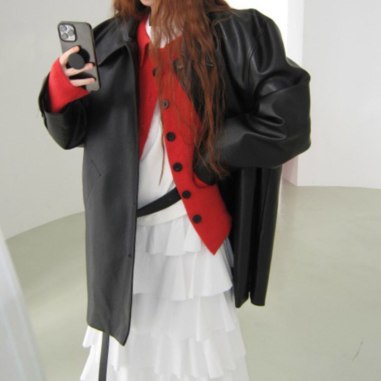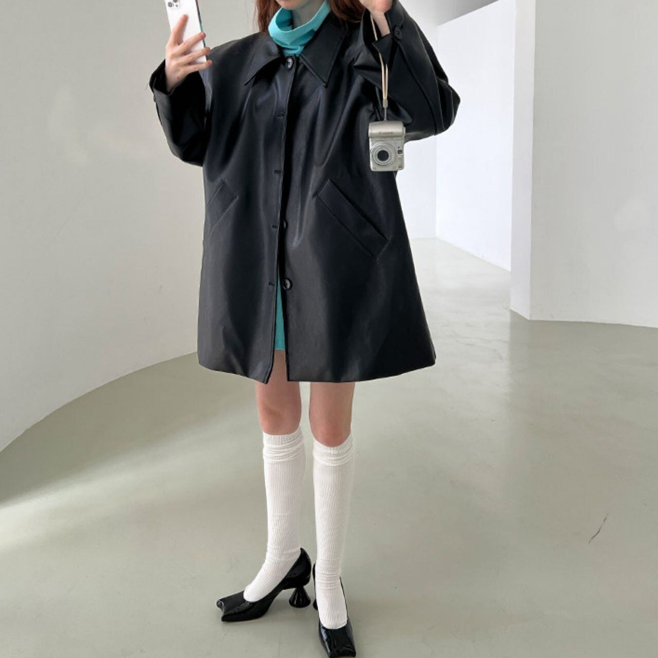 パフスリーブシルエットフェイクレザーコート LT0040028
