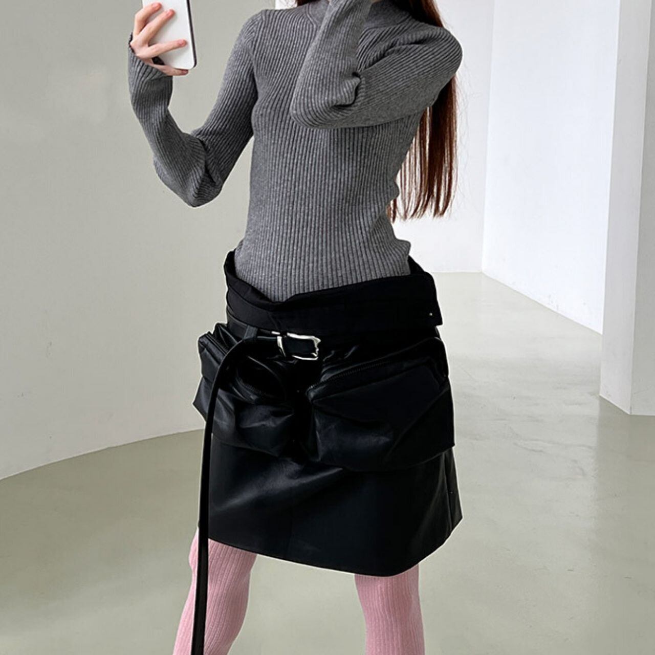 ポケットフェイクレザースカート LT0040036