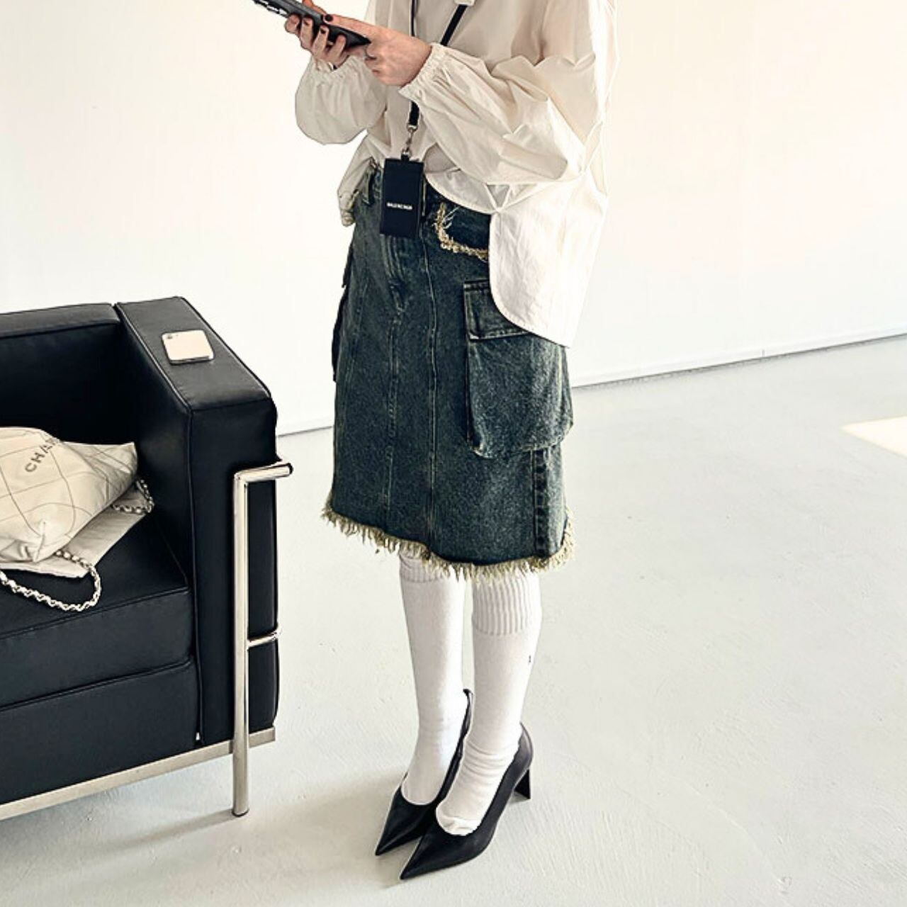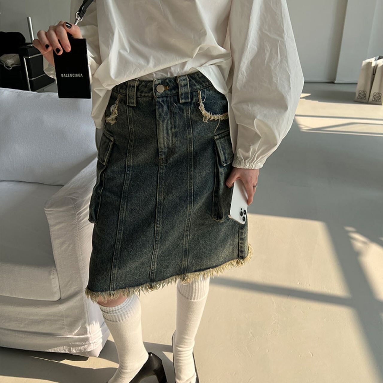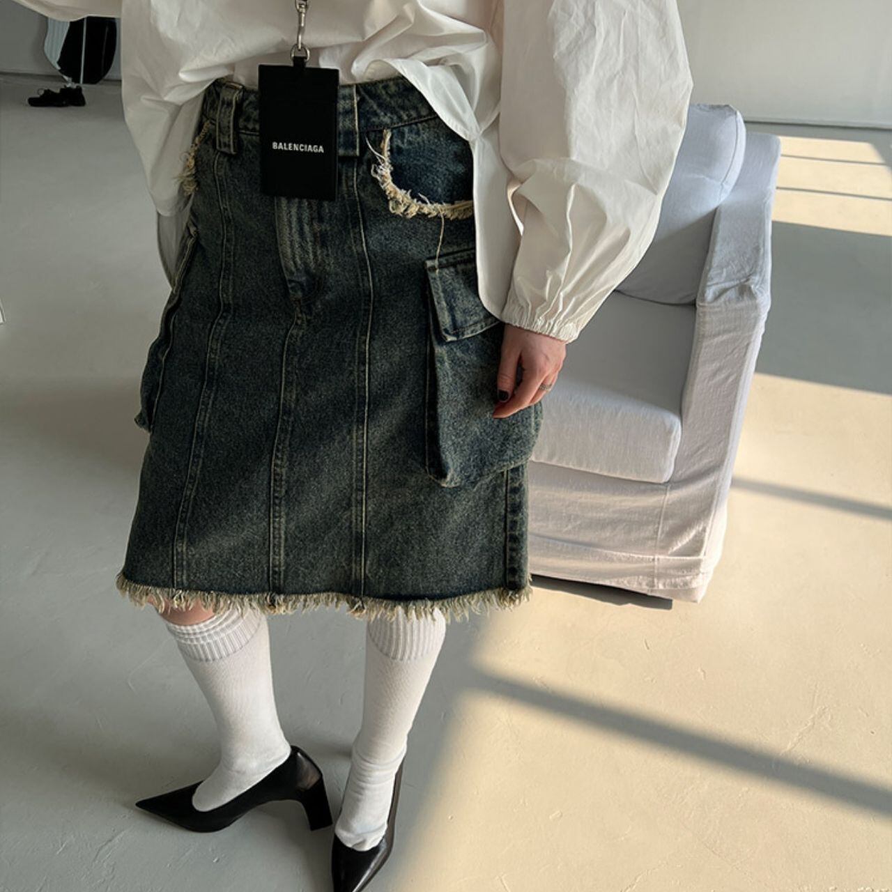 ダメージウォッシュカーゴポケットブラッシュドデニムスカート LT0040042