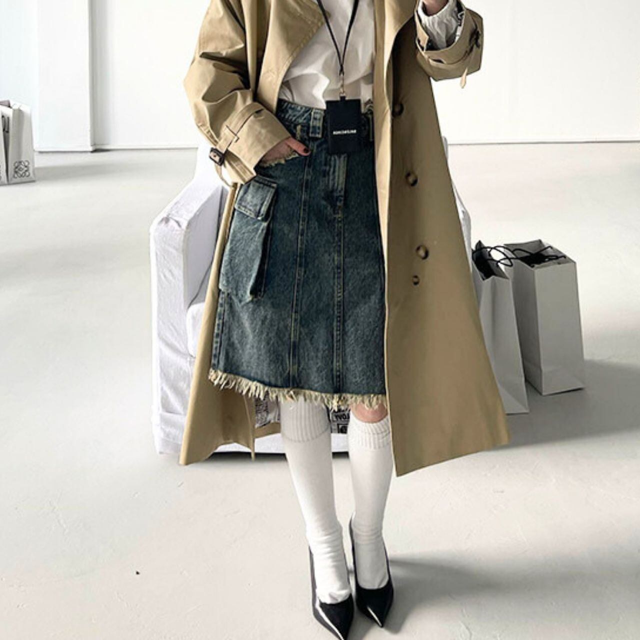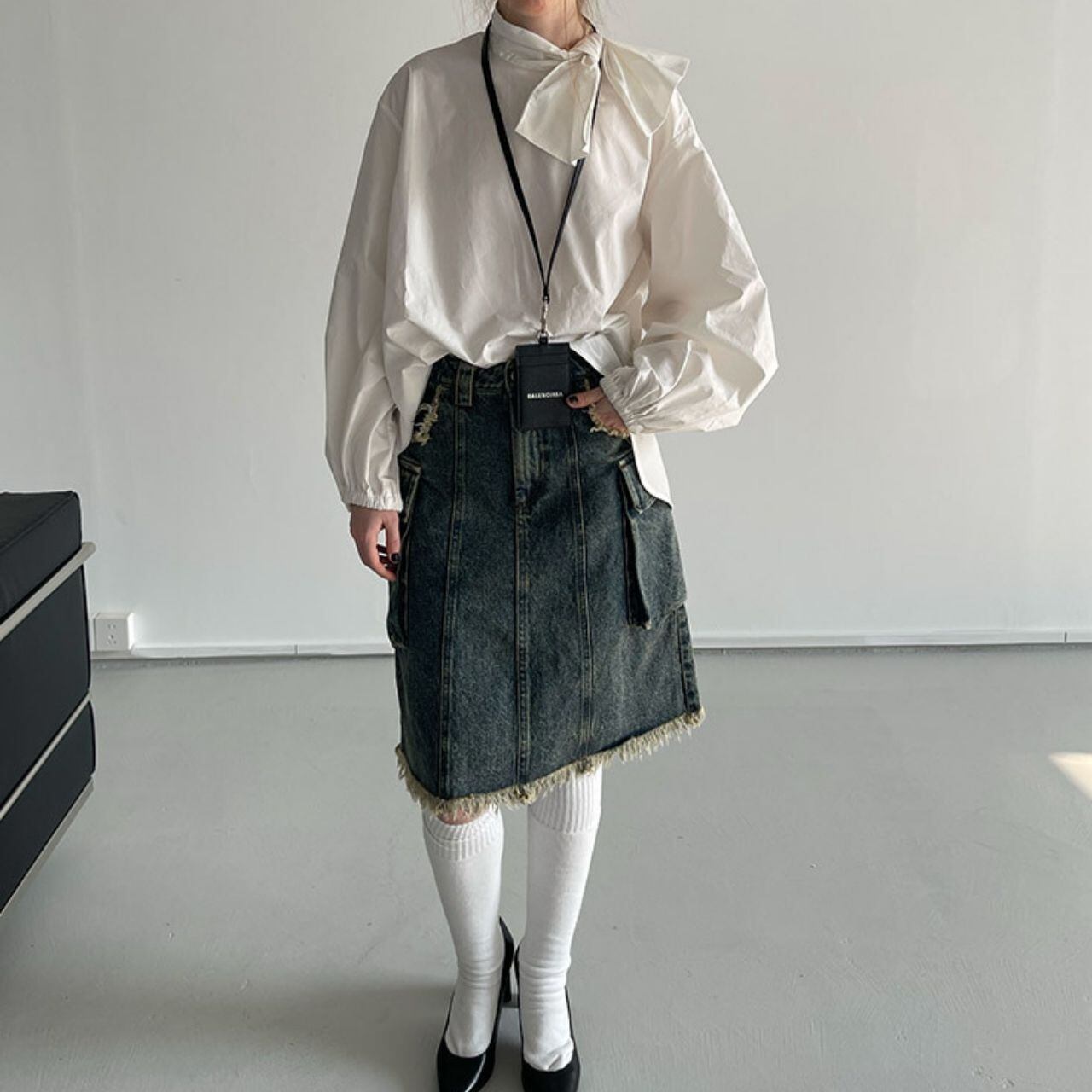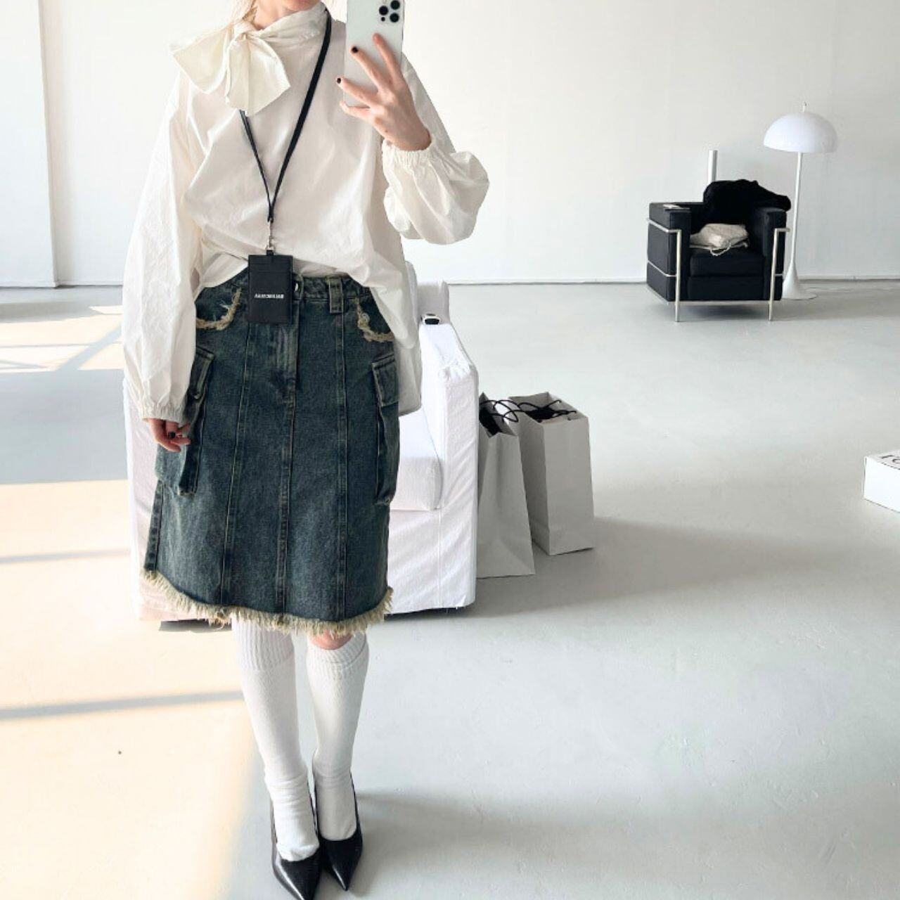 ダメージウォッシュカーゴポケットブラッシュドデニムスカート LT0040042