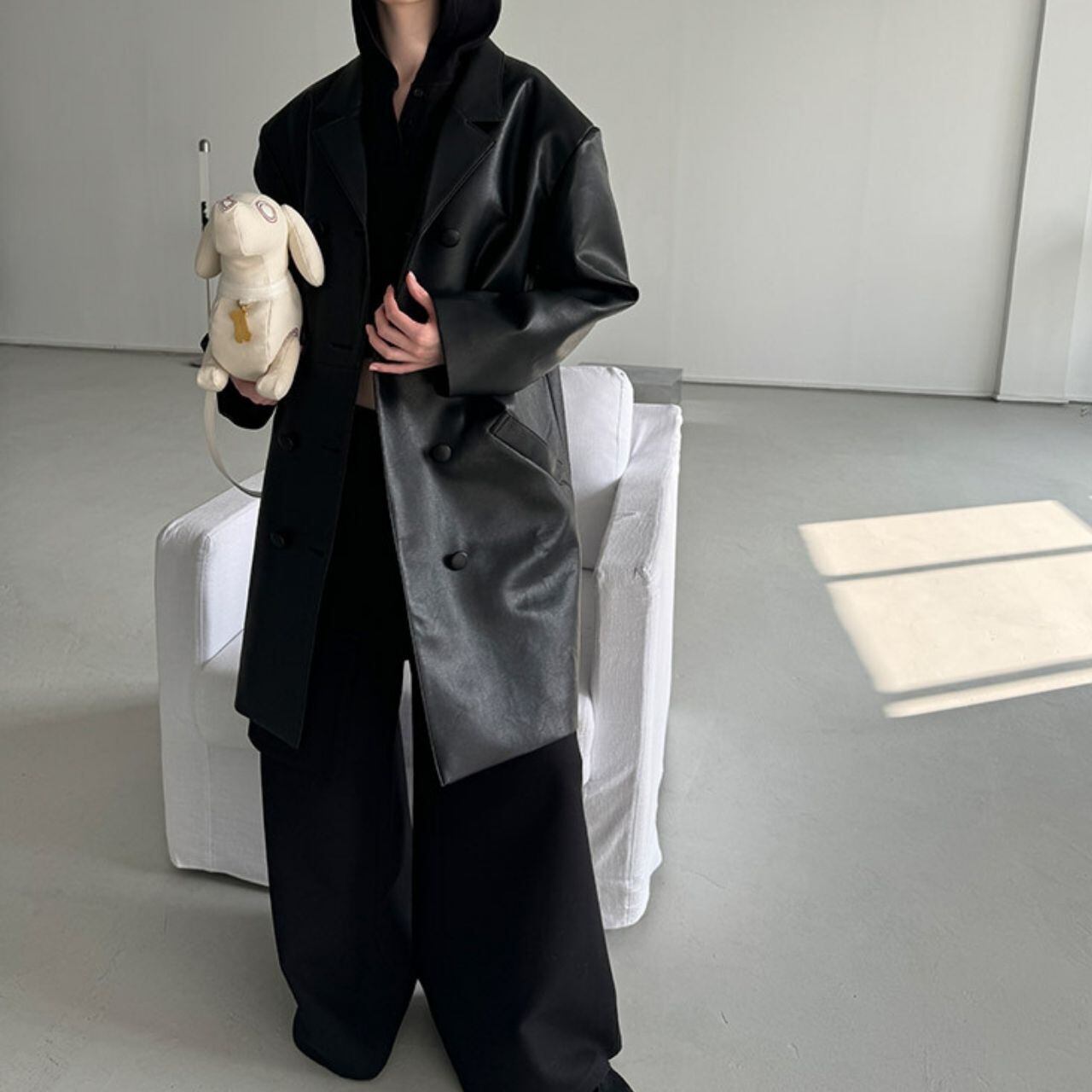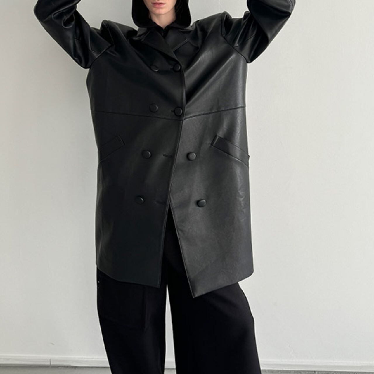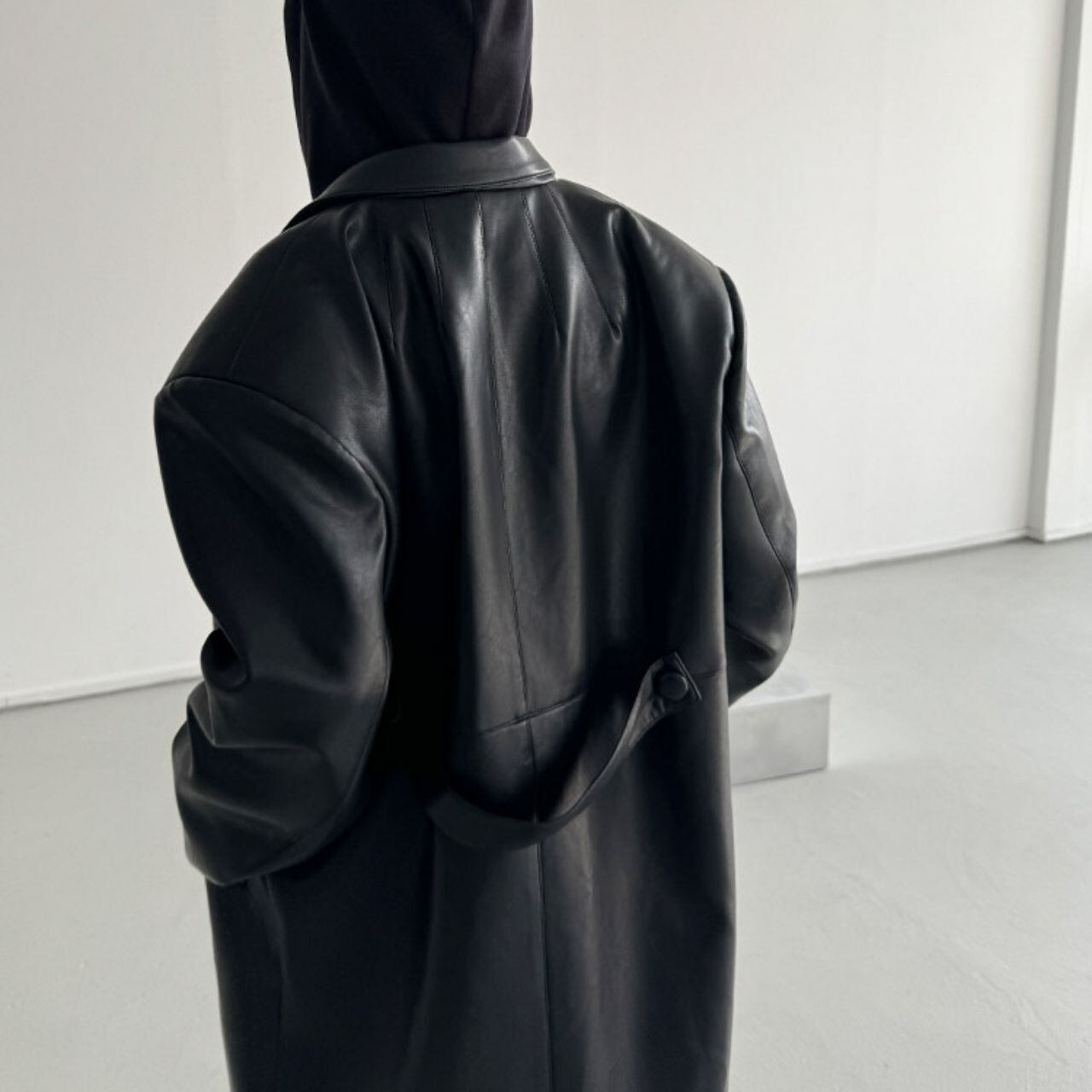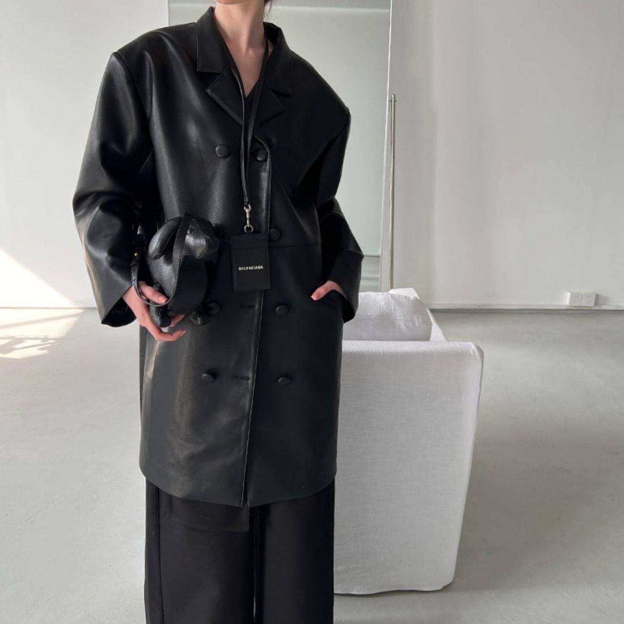 ブラックフェイクレザーミドル丈 ジャケット LT0040054