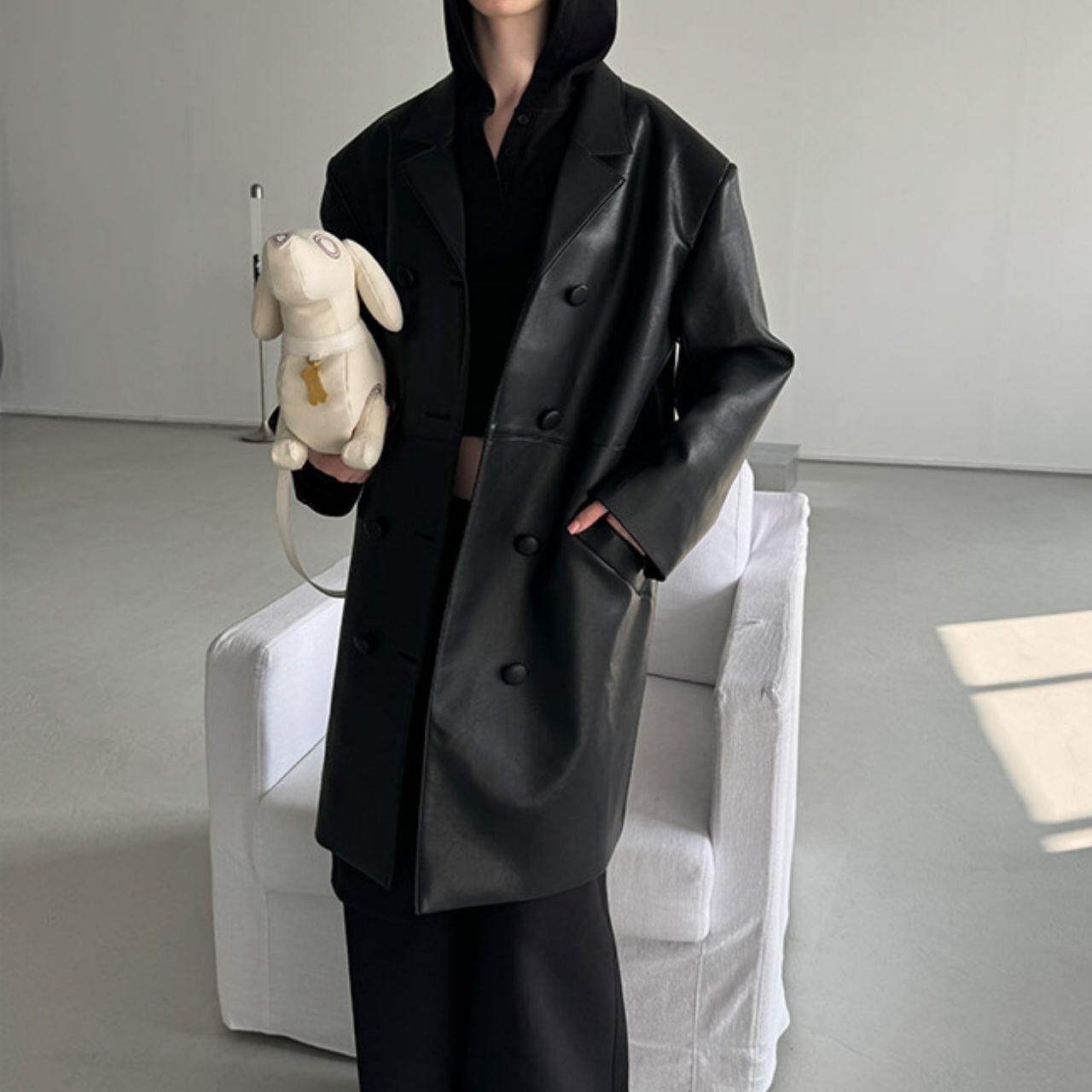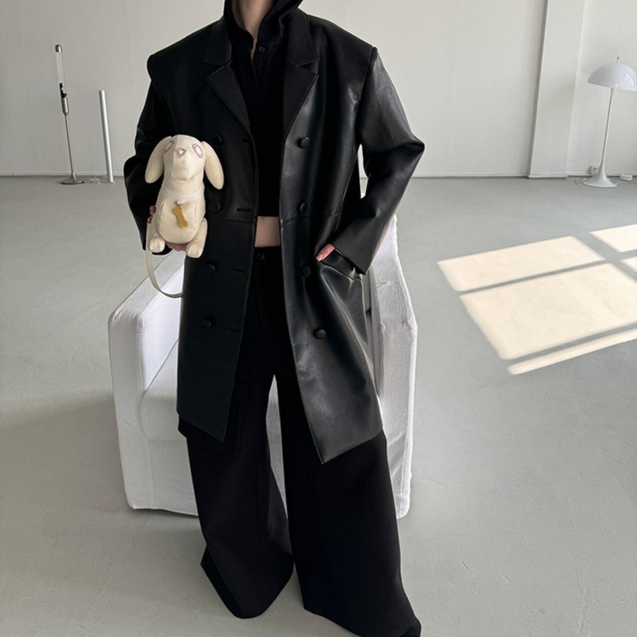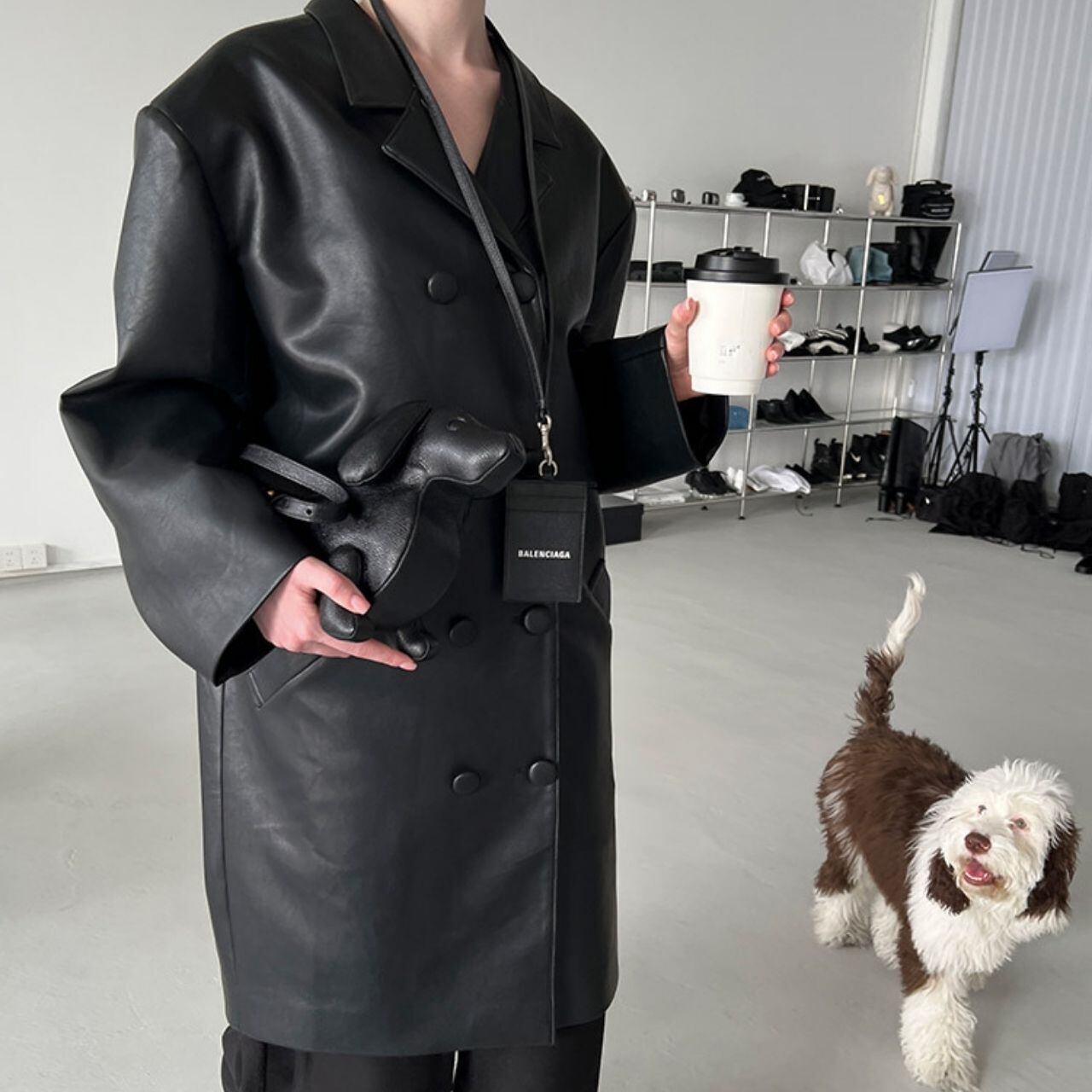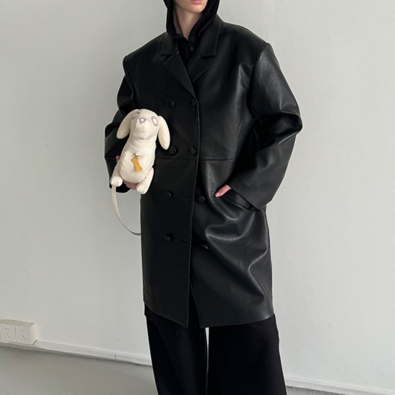 ブラックフェイクレザーミドル丈 ジャケット LT0040054