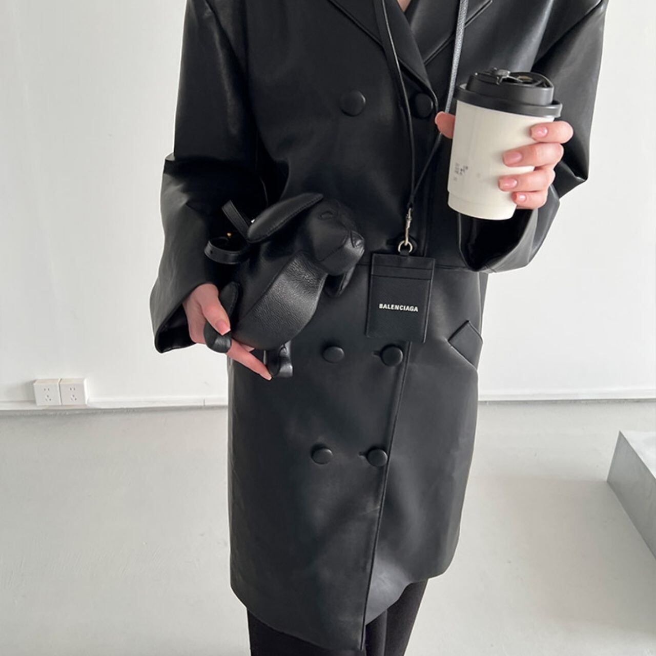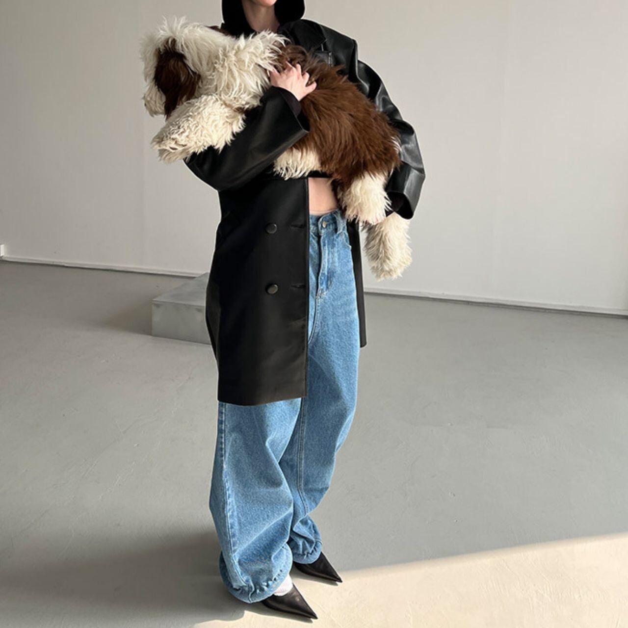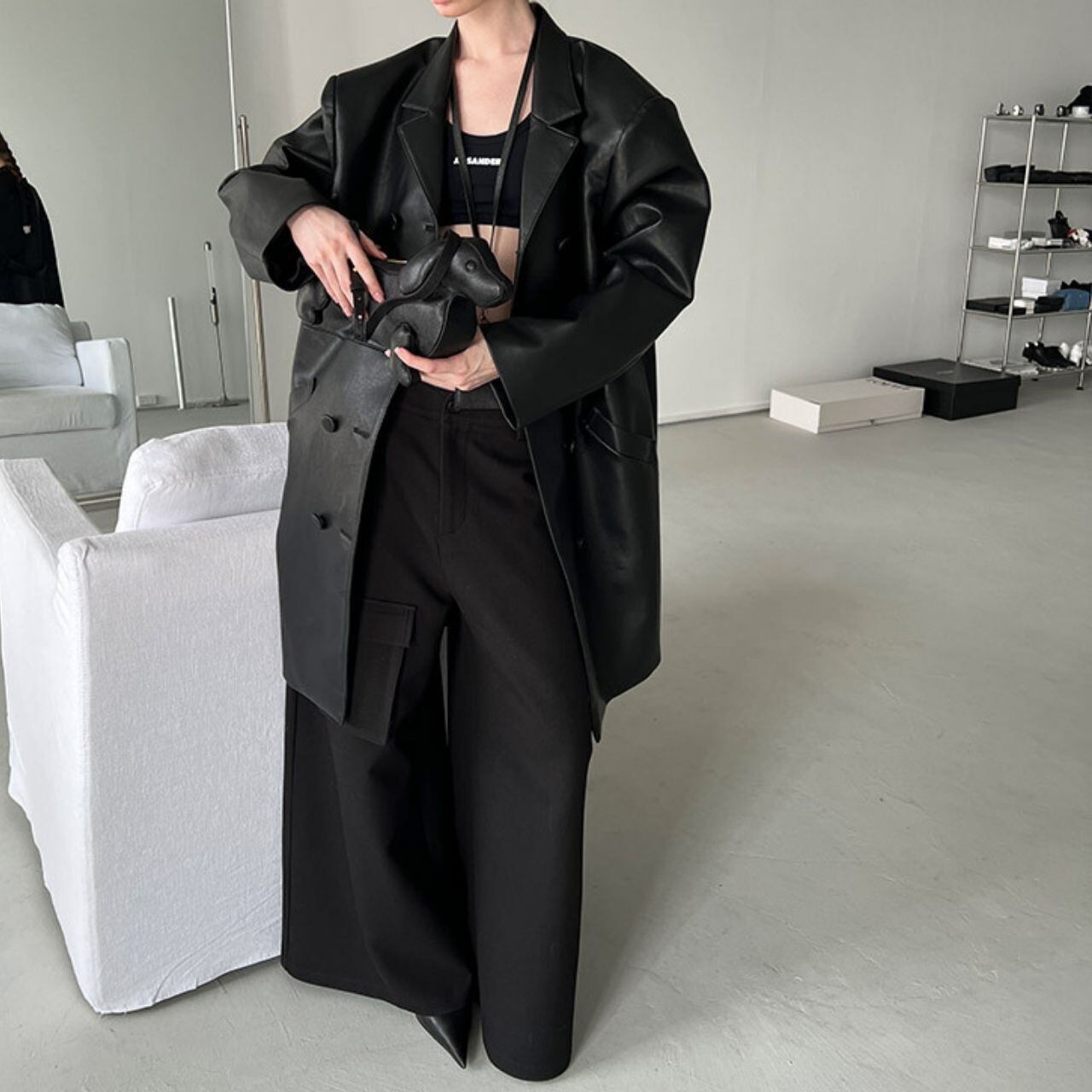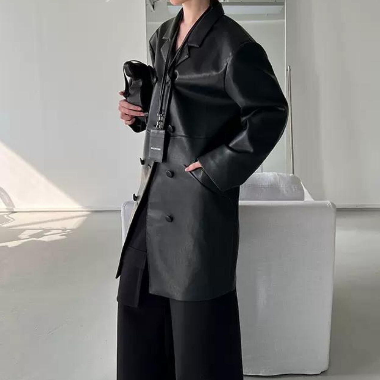 ブラックフェイクレザーミドル丈 ジャケット LT0040054