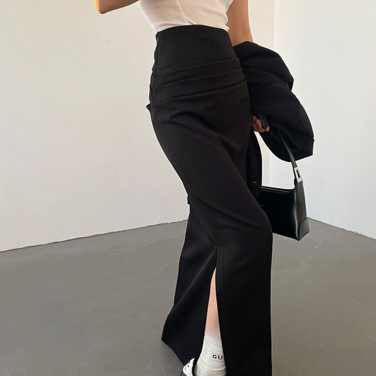 - S ウエスト: 62 cm ヒップ: 84 cm スカート丈: 101 cm