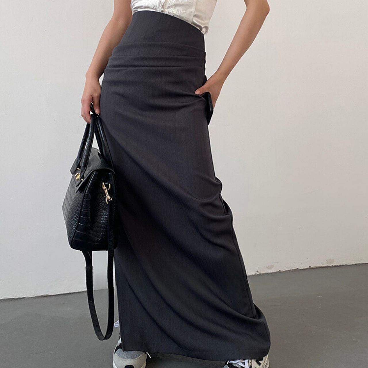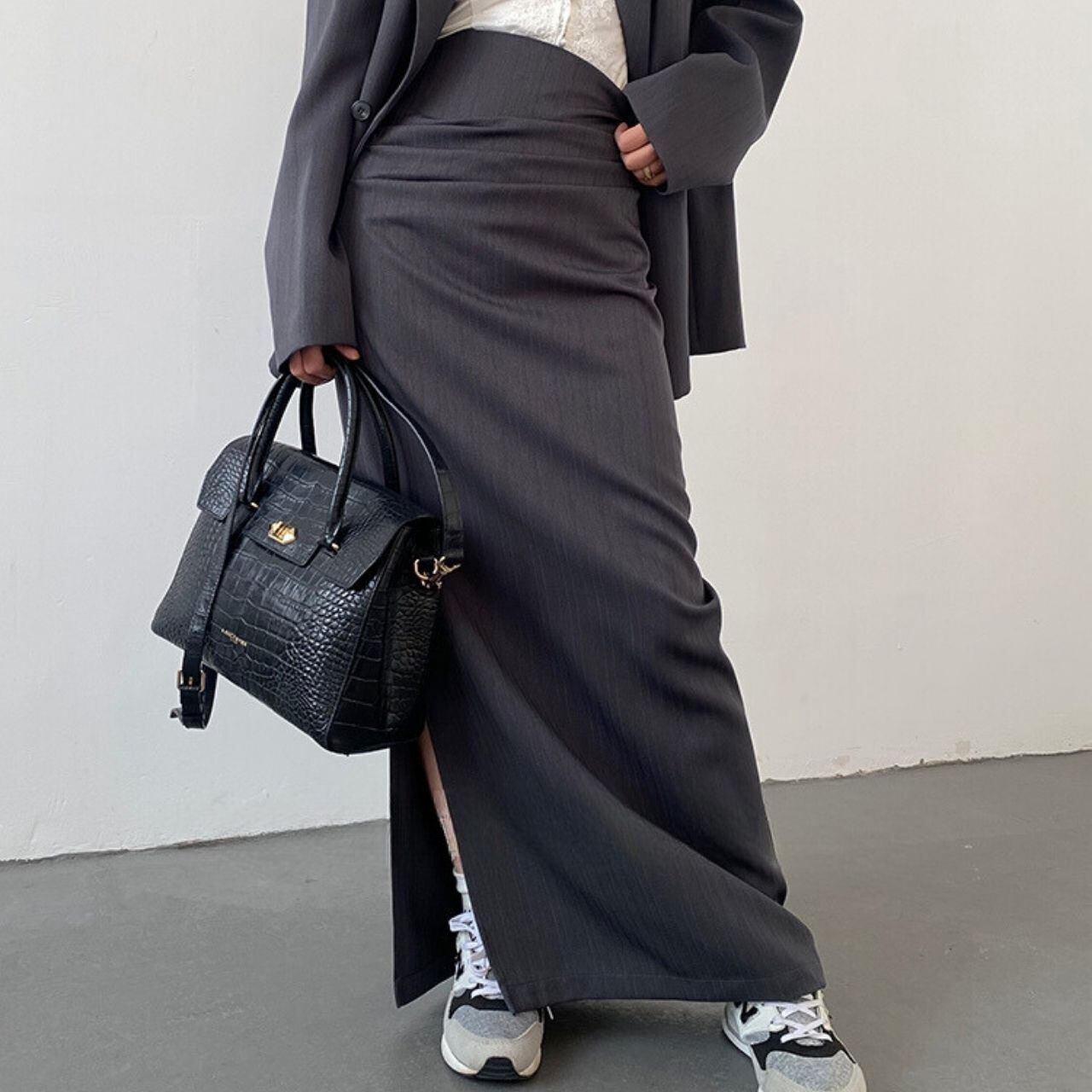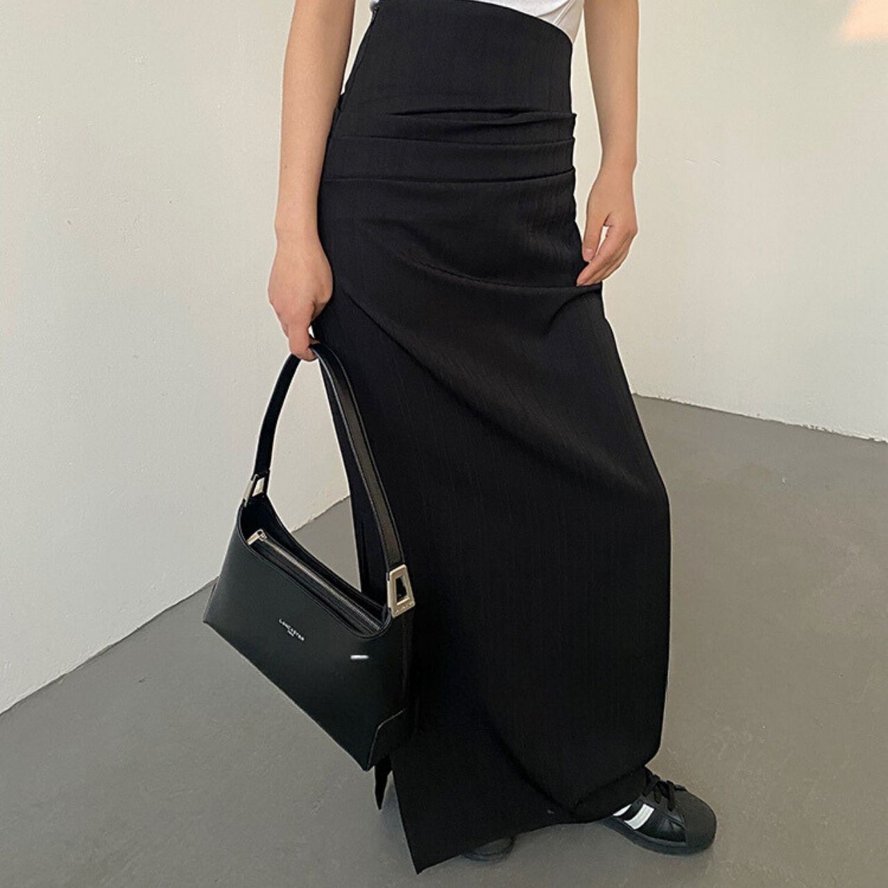 ハイウエストダークストライプスリットロングスカート LT0020031
