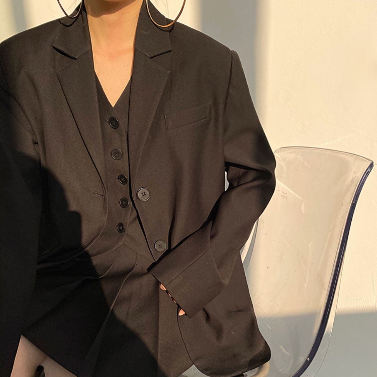 - S 肩幅: 44 cm 胸囲: 112 cm 着丈: 73cm 袖丈: 61 cm