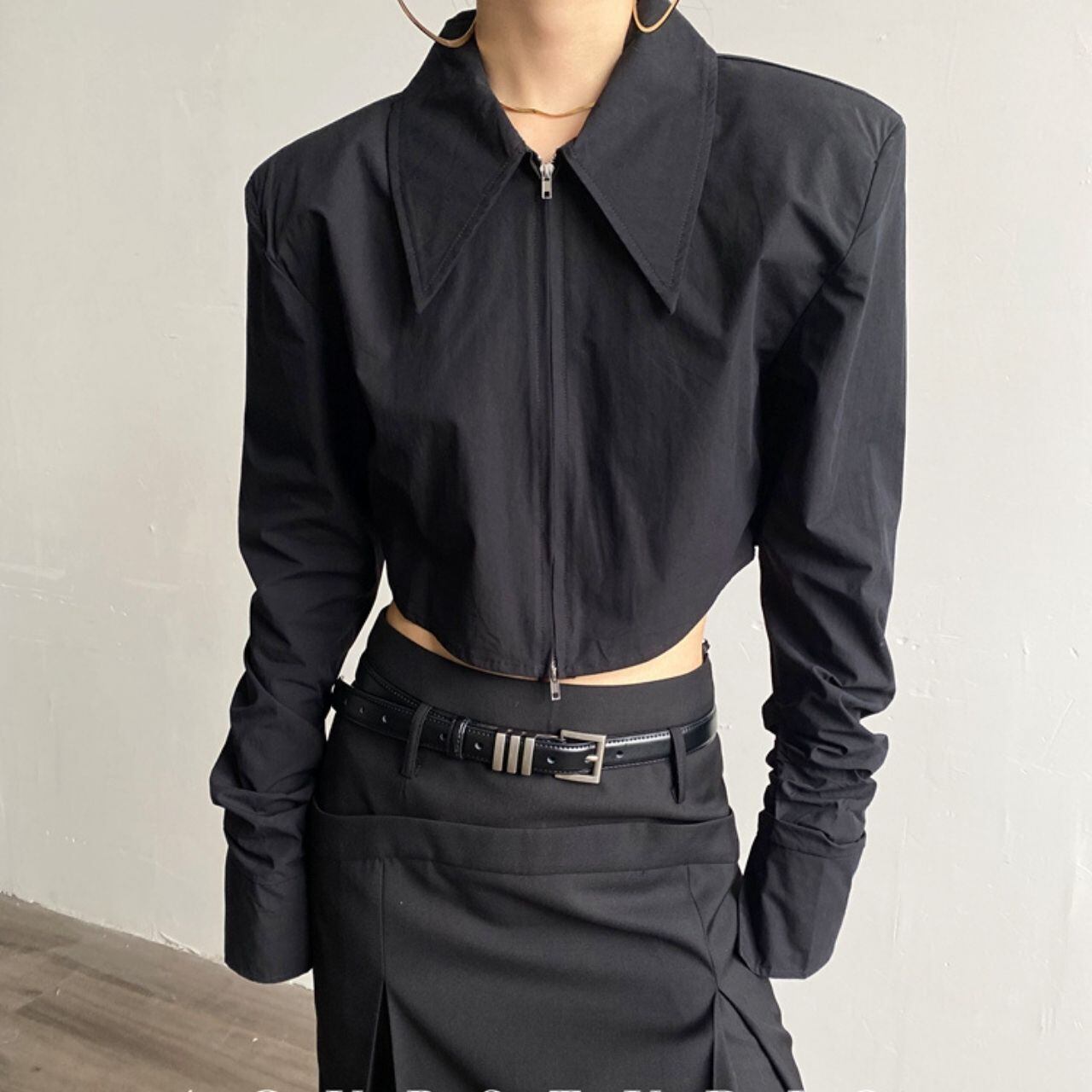 - L 肩幅: 47 cm 胸囲: 104 cm 着丈: 前40、後43 cm 袖丈: 70 cm