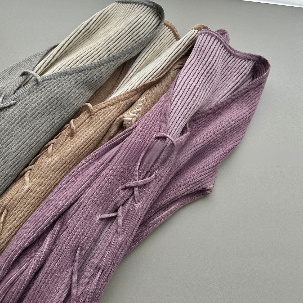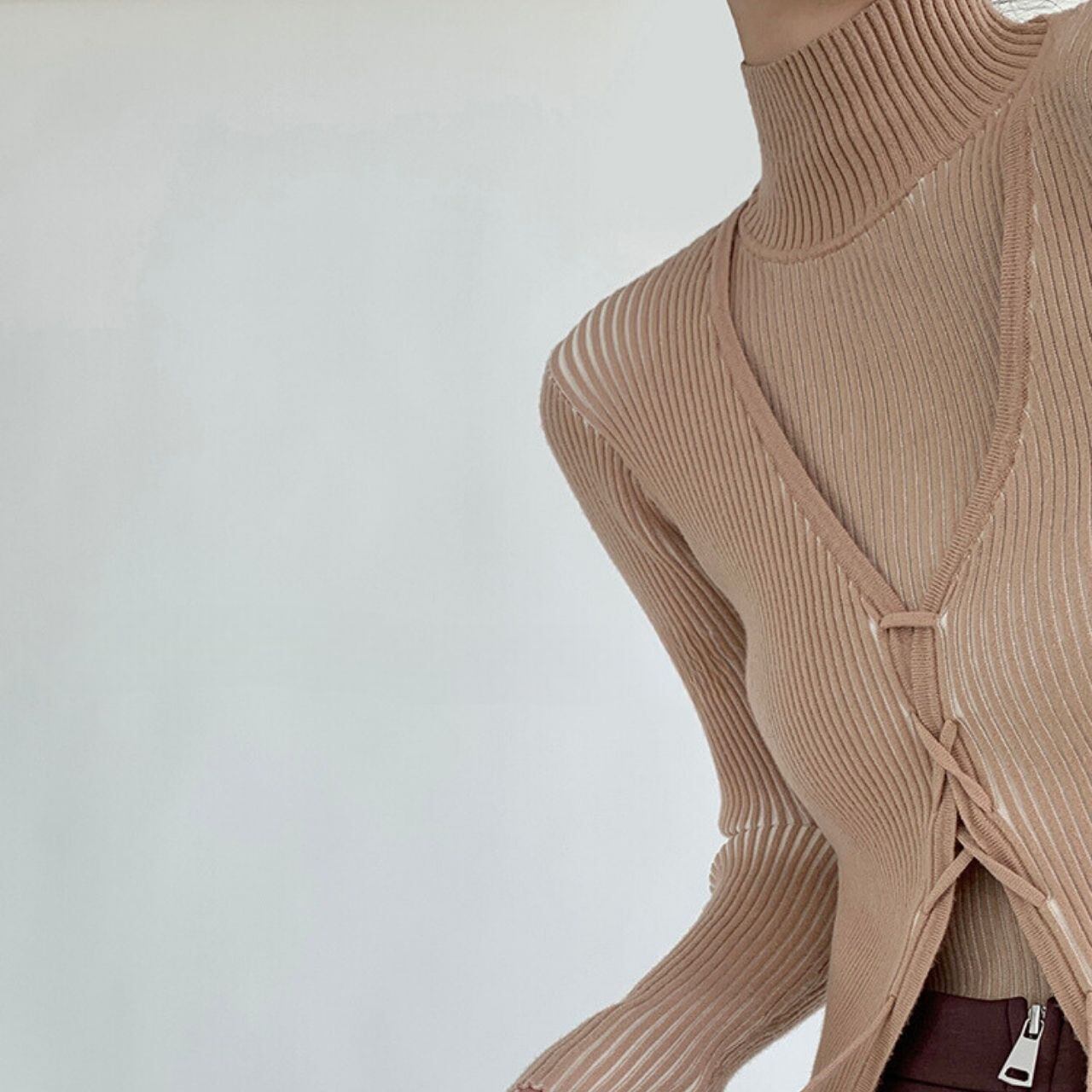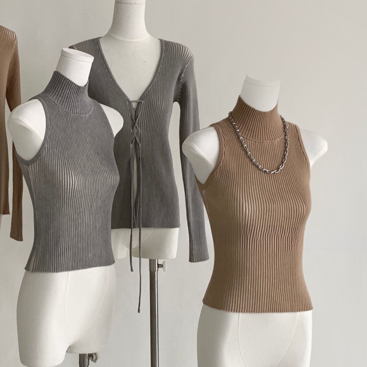 レースアップリブトップス&モックネックノースリーブトップス(2点セット) LT0010032