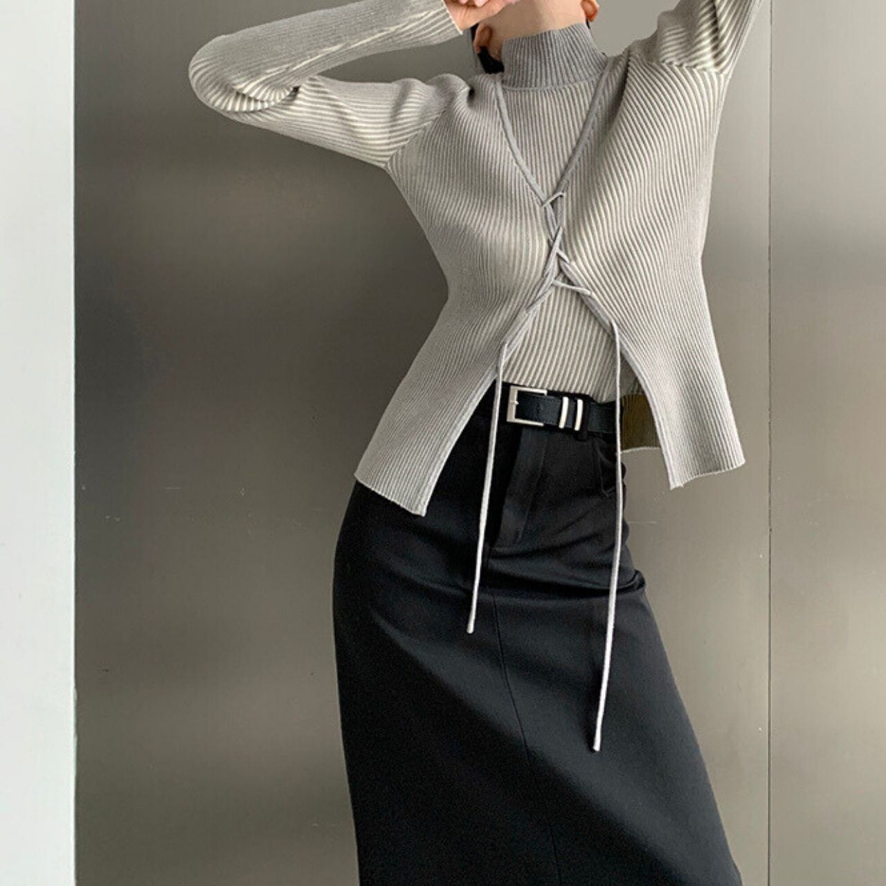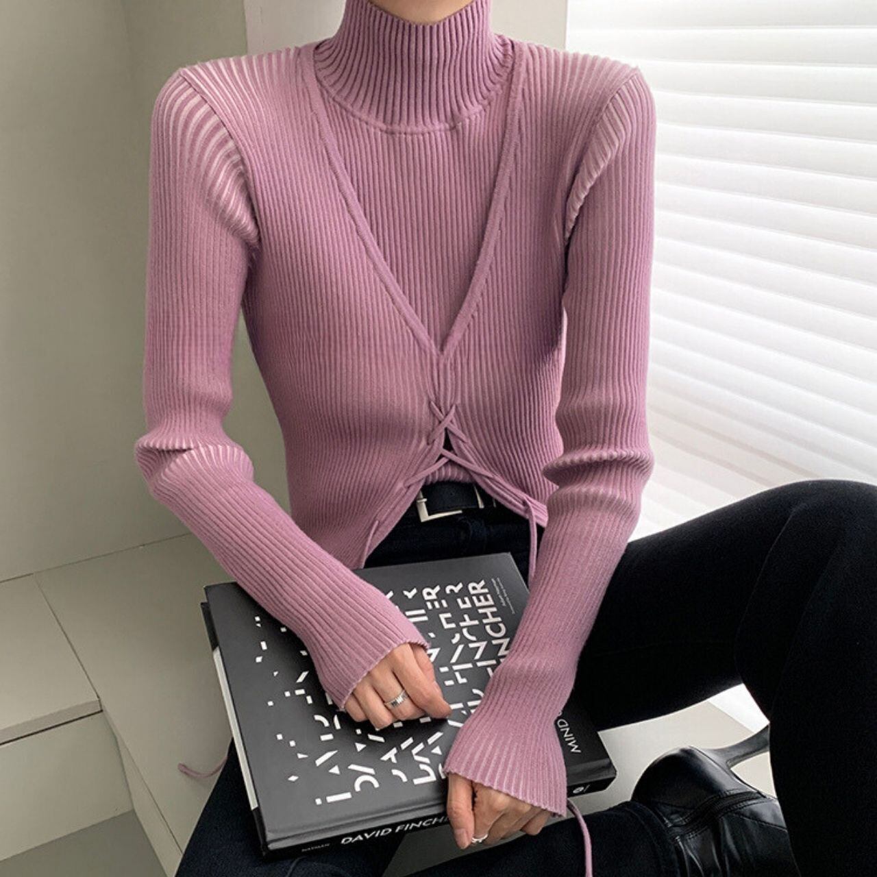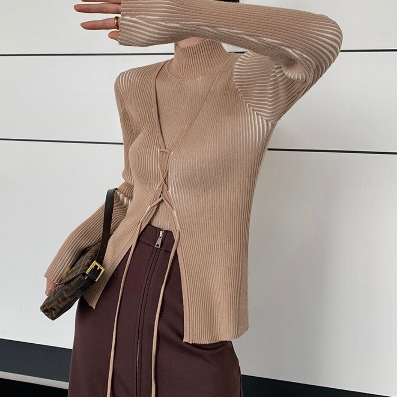 レースアップリブトップス&モックネックノースリーブトップス(2点セット) LT0010032