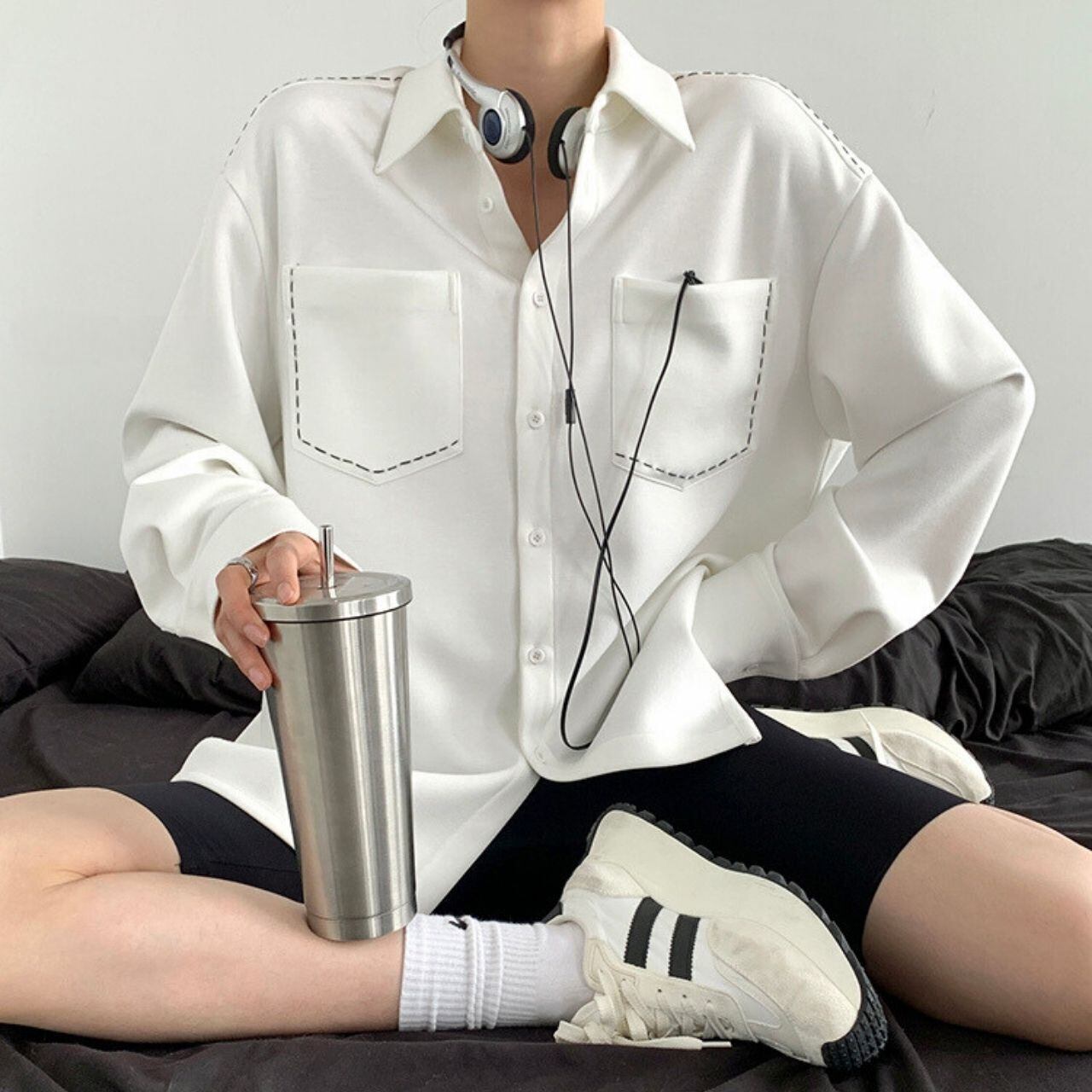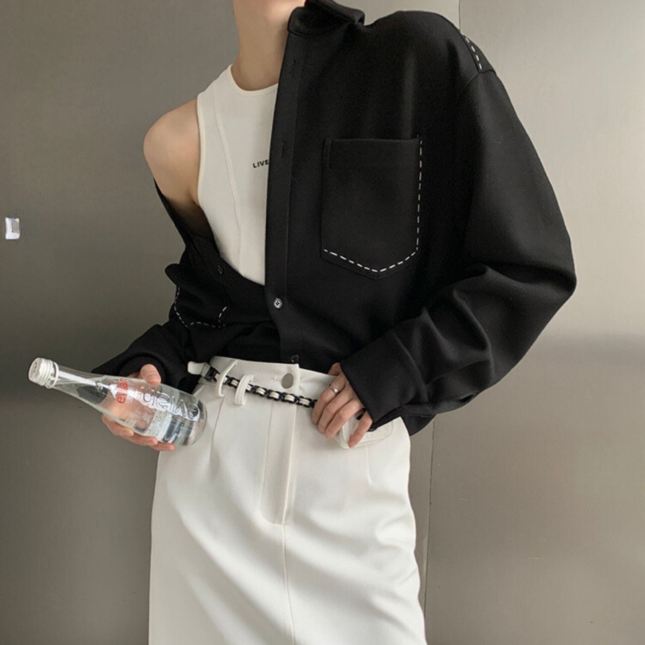 - L 肩幅: 53.5 cm 胸囲: 115 cm 着丈: 76 cm 袖丈: 59 cm